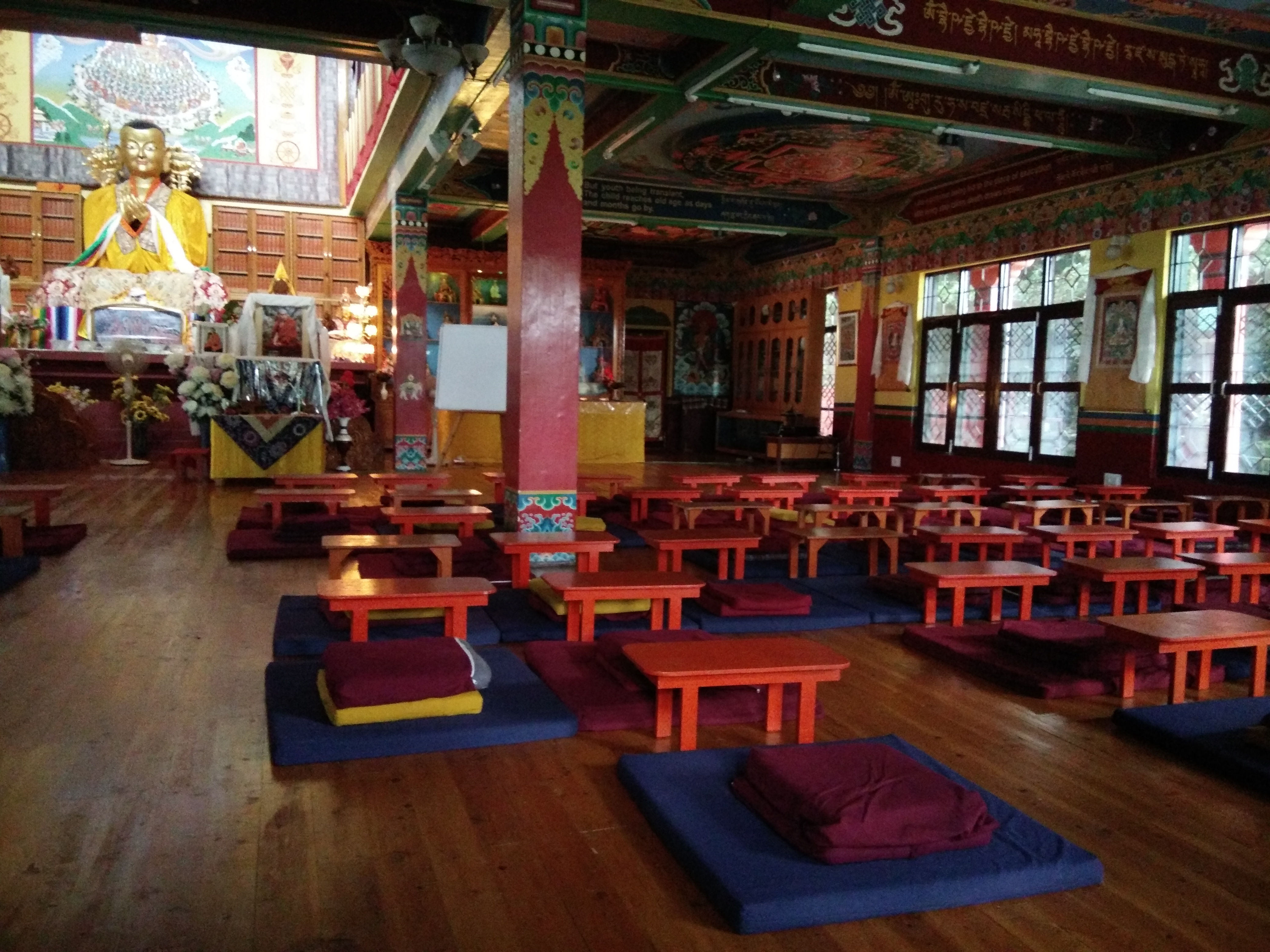 October 17, 2019October 17, 2019 Mira IMG_20190907_121329 The gompa. The majestic statue of Lama Tsongkhapa can be seen as also the sitting arrangement for students